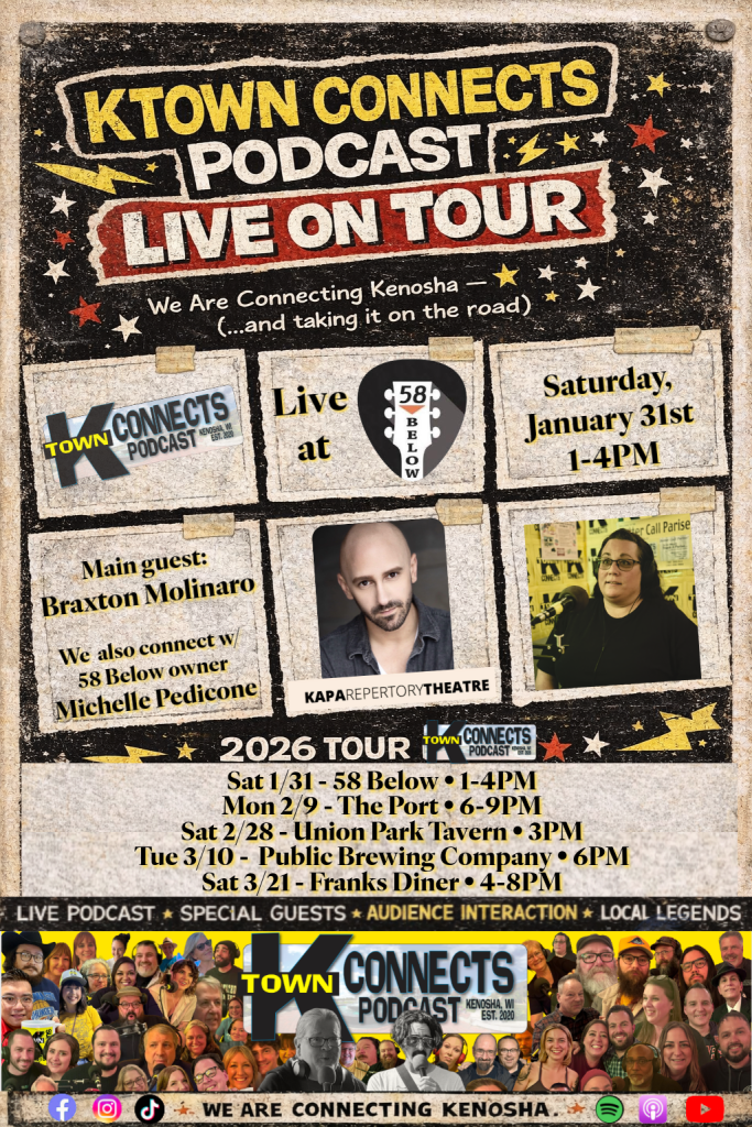 The tour launches at 58 Below with hosts sitting down live with Braxton Molinaro of KAPA Repertory Theatre, discussing creativity, theatre, growing up in Kenosha, and what it takes to build a national career. Molinaro will also preview KAPA’s production of A Streetcar Named Desire, playing February 20–22, 2026 at Circa on 7th. Tickets are available at www.kaparep.com. Guests will also hear from 58 Below owner Michelle Pedicone.