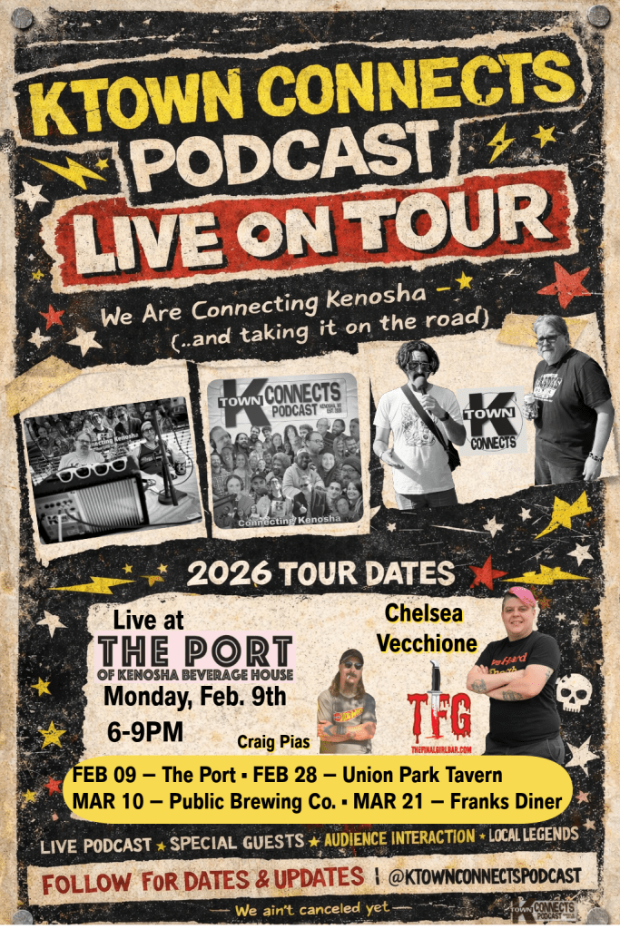 Special guest Chelsea Vecchione, owner of The Final Girl, Kenosha’s horror-themed bar at 7546 Sheridan Road, joins the hosts. Opened in late 2024, The Final Girl immerses guests in a slasher-movie-inspired atmosphere with horror décor, themed events like drag bingo and dark comedy nights, and a strong focus on inclusivity and community. Learn more at thefinalgirlbar.com.