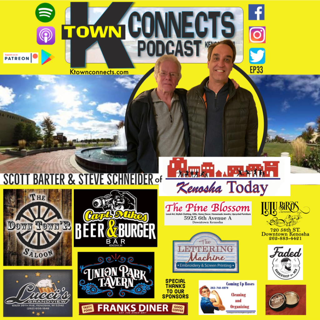 EP28 Kenosha Mayor John Antaramian EP29 Matt Geary of Public Craft Brewing Co.EP30 Terry & Dana Nelson of Kaiser’s Pizza, The Down Town’r Saloon, Blue Collar TavernEP31 MR. WINGSEP32 Brett BjornEP33 (Uncle) Scott Barter & (Elmo) Steve SchneiderEP34 Beth Dary of Lemon Street Gallery & Art SpaceEP35 Cheryl and Gary Farrand of The Pine BlossomEP36 Josh Ferguson of Playspace Kenosha EP37 Anthony KennedyEP38 Valeo’s PizzaEP39 Kevin Glowicki of Never Stop MediaEP40 Shay “Mr. Keno$ha” MayorsEP41 Kenosha HarborMarketEP42 John Collins EP43 Andy BergBonus Music Trivia Episode w/ special guests Sarah Kovach, owner of Wink Beauty Beautique & Jake “The Weather Guy” HoeyEP44 Sarai Gillmore owner of Salon on SixthEP45 Fusion – Aimee & Danny CrucianelliEP46 Lou Rugani EP47 Rob Greskoviak owner of Villa D’ CarloEP48 Riki TagliapietraEP49 Hill Wozniel owner of Hill’s Hot Rod Hide OutEP50 Baron Olsen of BLOW Co. CandlesEP51 DonomaEP52 Laura Tyunaitis of Visit Kenosha (visitkenosha.com)EP53 CarboxEP54 The Fresh Bar – Laura SpairEP55 Kenosha Beauty Supply/Hit Your Potential Boxing & Fitness (Mrs. Lady Hair & Joe Langston) EP56 The City of Kenosha Tavern League of Wisconsin President Art DeBeare & Secretary Sara LucciEP57 Katy Wallner, owner of Hot Mess StudioEP58 Marc Riutta cofounder of Handlebars & Bar and the Ride of the Living Dead bicycle ridesEP59 Dr. Destruction aka Dale WamboldtEP60 Jill ZgorzelskiEP61 Monica & Tom Karnes of LaMacchia Travel EP62 Rhonda Bell & Erica Buskirk of Twisted CuisineEP63 Ashling on the LoughEP64 Dave Strash, the CEO & President of the Chamber of Commerce EP65 Mark Wistar, owner of House of Nutrion EP66 Matt Glaman, Bluehorn Digital EP67 Carl the Kenosha Turkey EP68 Koerri Elijah & Daniel Thompson EP69 Jo Wynn of Walkn’ in my shoesEP70 Craig Pias, owner of The Port Beverage House of Kenosha